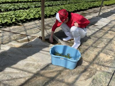 「野菜」班では、野菜苗の管理とハウスの除草をしました。