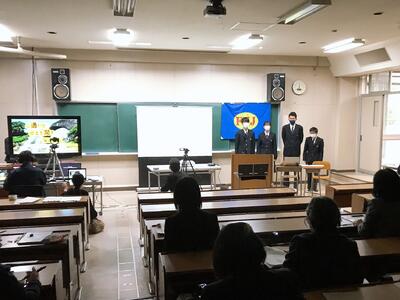 マリン校舎の概要や海の環境保護などについての取り組みの発表があったあと、
