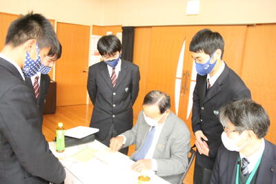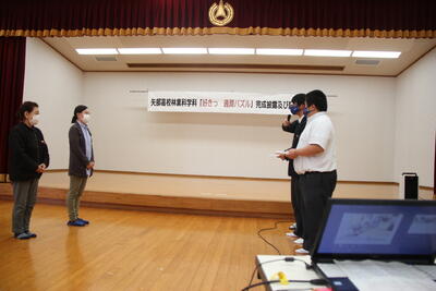生徒たちがこれまでの経緯や製作の様子を面白おかしく説明したことを聞いていただき、