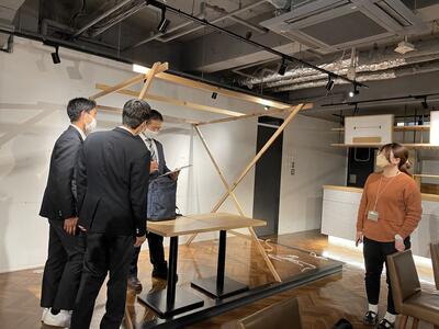 また、林業科学科が作成したマルシェのディスプレイ用の木工テントの仮展示も行いました。