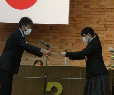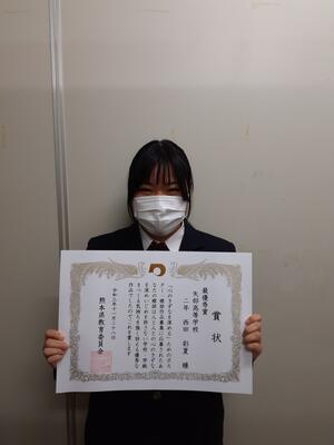 普通科2年ビジネス類型の西田彩夏さんが受賞し、11月28日に県庁で行われた表彰式に参加しました。