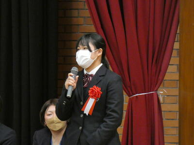 式典では野菜専攻、草花専攻、食・生活コースの代表者が、これまでの栽培管理や農業・食について考えたことを話しました。