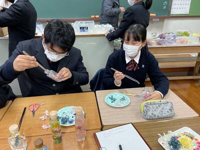 12月7日(火)に食農科学科2年生と3年生(草花専攻)でハーバリウム体験学習を行いました。