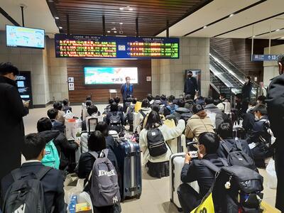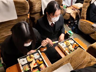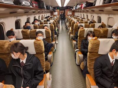 集合、整列し新幹線に乗り込みましたが、たった1分間の停車時間に全員がスムーズに乗ることができ、日頃から身につけている機動力を発揮していました。