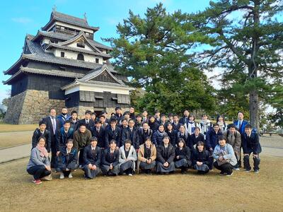 国宝である松江城では、班毎に天守閣に上り、松江の街を一望しました。