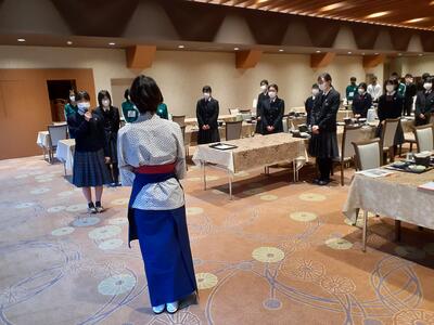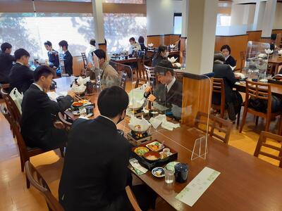 そして全員集合し、2日間お世話になった旅館の方へのお礼の挨拶を行い、朝食をいただきました。