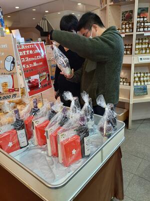 お土産にワインを希望する生徒は先生に頼んで購入していました。
