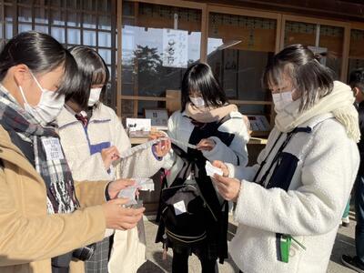 生徒たちは参拝したり、おみくじを引いたりと、厳粛な雰囲気を味わいながら散策していました。