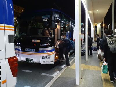 解団式を済ませて、これからバスで学校へ向かいます。