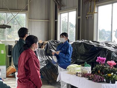 食農科学科2・3年の草花専攻生4名が参加し、学校で栽培しているシクラメンの品種やこれまでの栽培状況などについて、