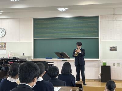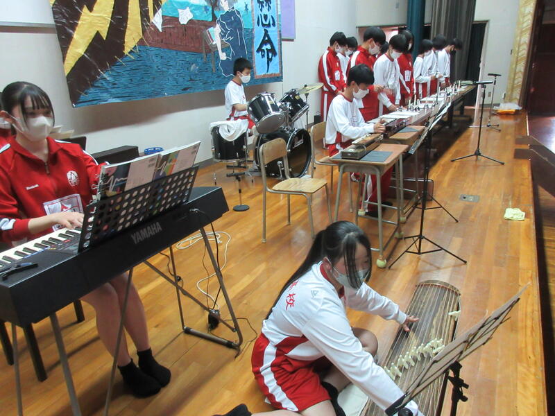 音楽の発表では色んな楽器に挑戦し「和」をテーマに3曲演奏しました音楽