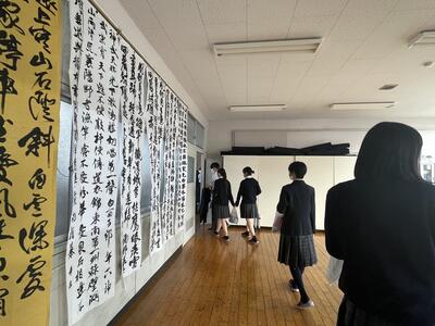 また、音楽・書道・美術の学習について、説明がありました。美術室にはたくさんの絵が展示されていました。また、書道の奥深さを知ることもできました。