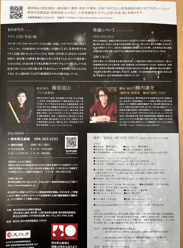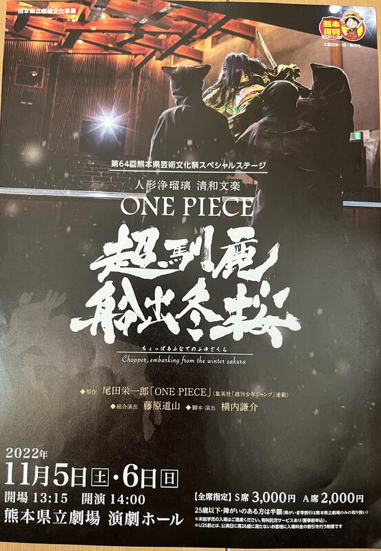 お知らせ 人形浄瑠璃 清和文楽 ONE PIECE 矢部校生も出演