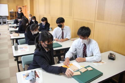 普通科2年生の総合的な探求の時間で清和文楽の継承を行っている生徒たち。
