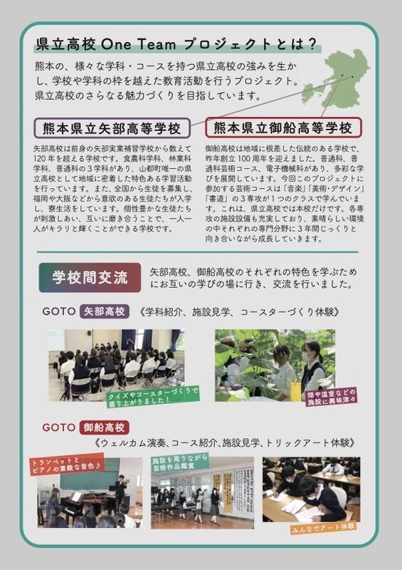 今年度OneTeamプロジェクト事業で「矢部高×御船高校SDGsカフェ&ワークショップ~住み続けることができる街づくり~」というテーマのもと、御船高校と交流しています。
