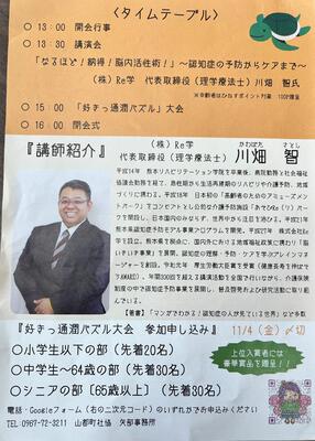 認知症予防パズル「好き!通潤パズル」を用いたパズル大会を行います。