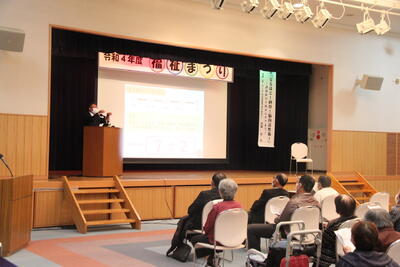 福祉まつりの開会式では林業科学科の3年生が認知症予防パズルの販売開始までの取り組みを発表しました。
