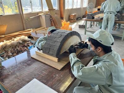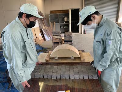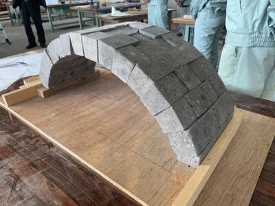 全5回の研修の3日目の今日は、前回の続きの石橋の模型を製作しました。