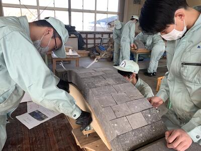 林業科学科2年生は、ものづくりマイスターを講師に石橋石工(石材施工)の研修を実施しています。