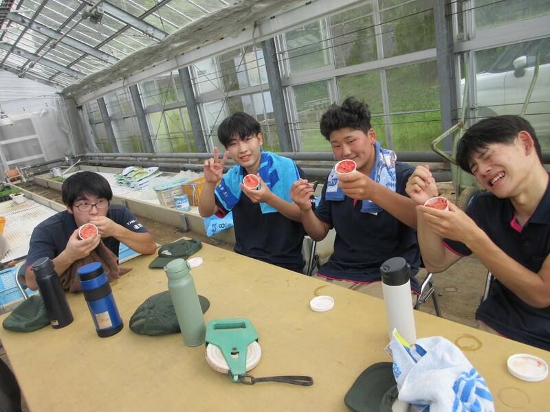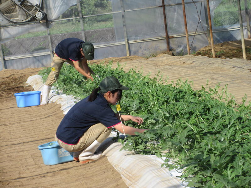 食農科学科2年生で栽培した小玉スイカを