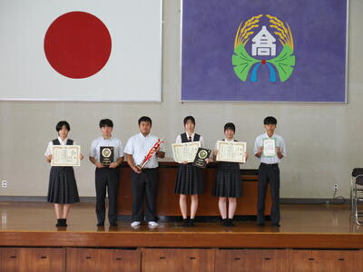 表彰式では、パソコンの検定や全国出場を決めた農業クラブの平板測量競技と農業鑑定競技の表彰を行いました。