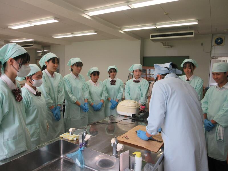 食農科学科3年生の調理実習でアジをさばきました。