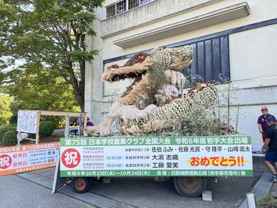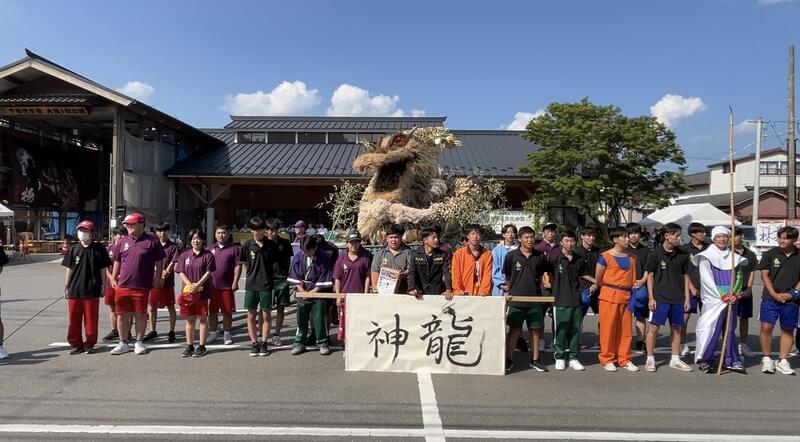 本年の干支が「辰」であることや、アニメ ドラゴンボールの作者 鳥山 明さんのご逝去に追悼の意を込めて「神龍(シェンロン)」を製作。3メートルほどになる大造物は、演習林や阿蘇の草原から自然の素材を採取して2カ月にわたって、林業科学科の生徒が製作を進めてきました。