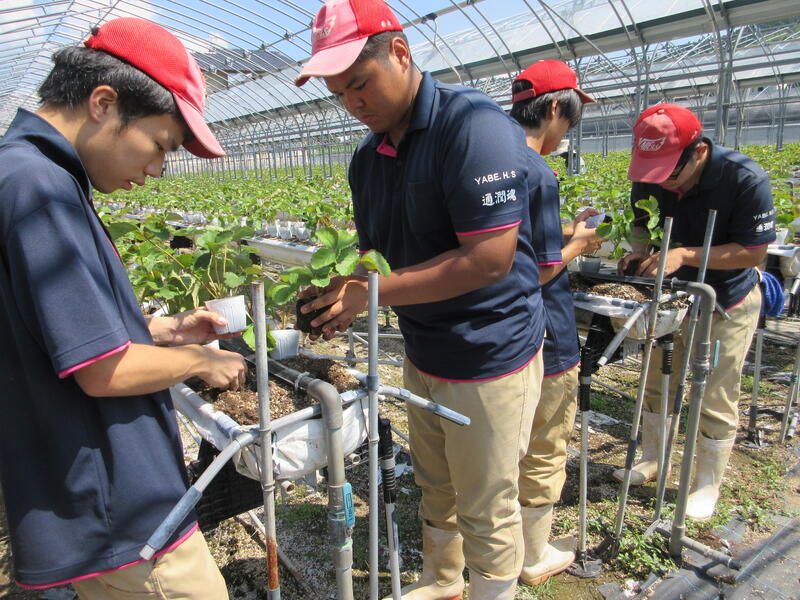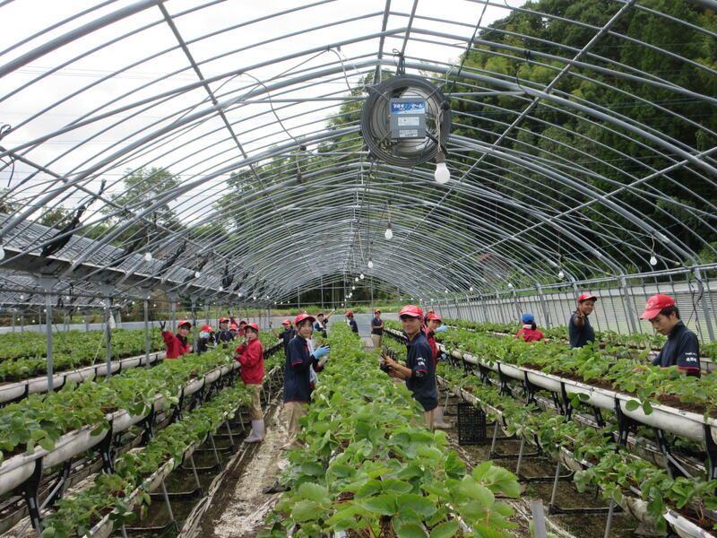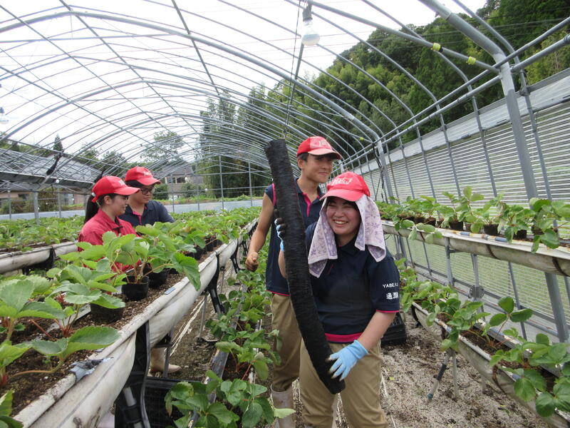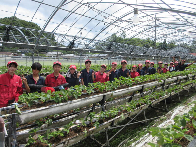 食農科学科3年生全員で、近隣農家さんのイチゴの定植のお手伝いに行きました