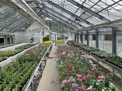農場の草花温室では花苗が順調に成長しています