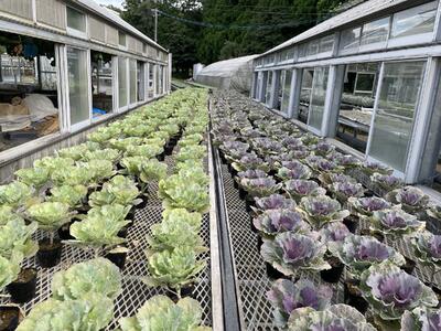 ビオラやハボタン、ダイアンサスなど多くの種類を栽培しています。花苗は毎年地域の方々や近隣小中学校から注文をいただいています。