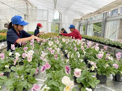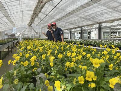 写真はビオラの栽培管理をしているところです。