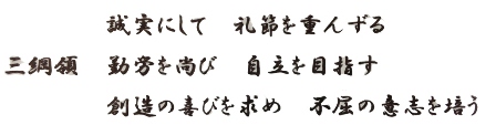 本校では、「自ら気づき 考え 行動する」という教育スローガンのもと、すべての教育活動をとおして、生徒の主体性や自らを律する力を育成します。また、地域とのつながりをとおして、将来、地域社会を構成する自立した一人の人間として力強く生きていくための総合的な力(人間力)を高めていきます。