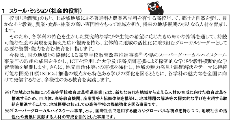 スクール・ミッションでは、学校の理念や価値、目指す教育とともに、特色化・魅力化についての方向性を明確にし、今後の取組みにつながる内容を示しています。