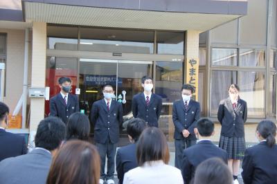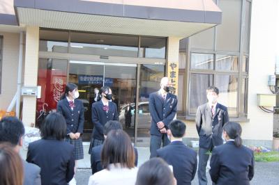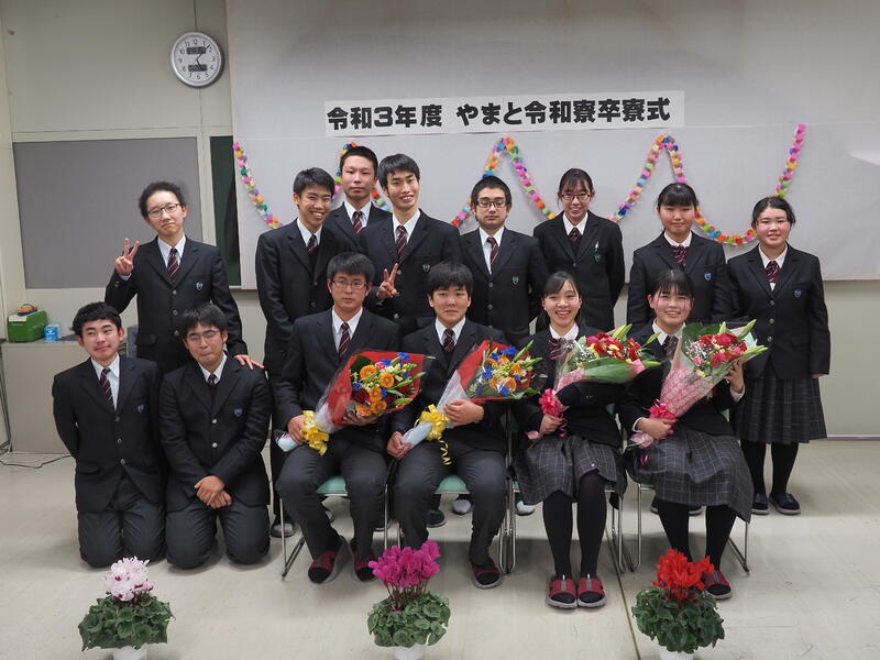 来校され、保護者の方々、本校職員も一緒にみんなで卒寮生の門出を祝いました。