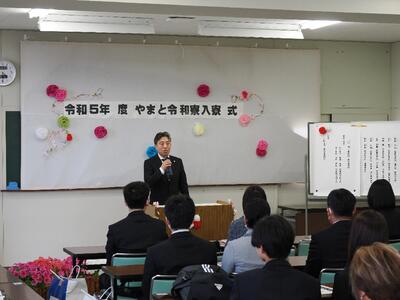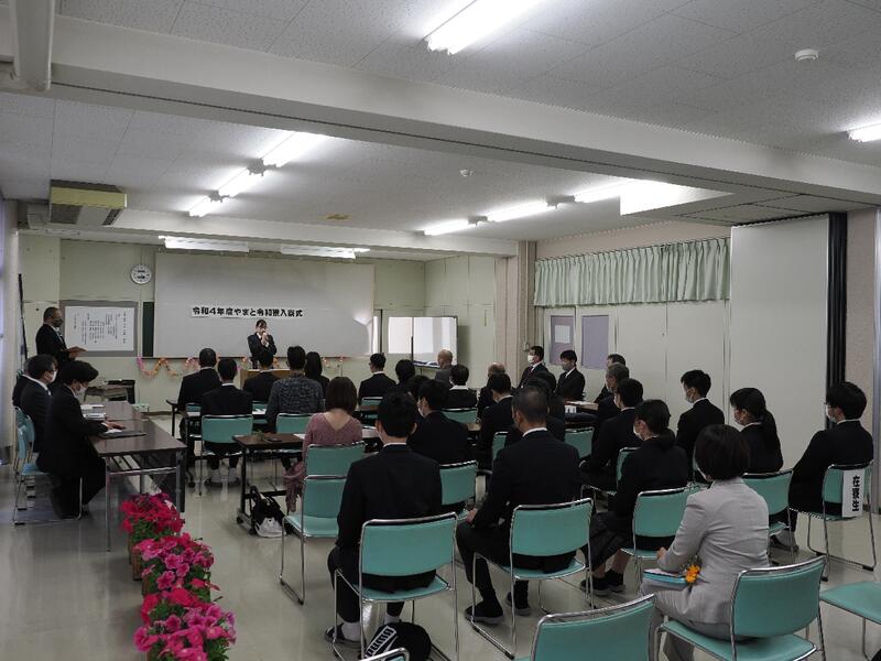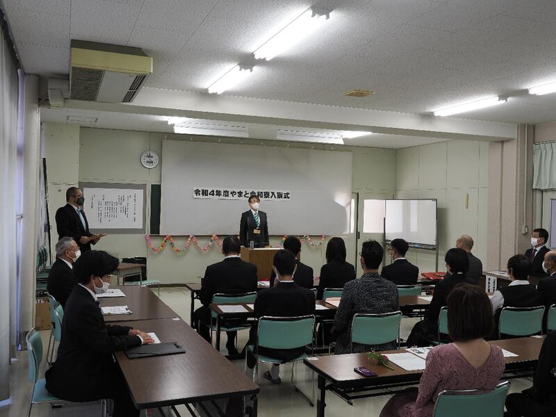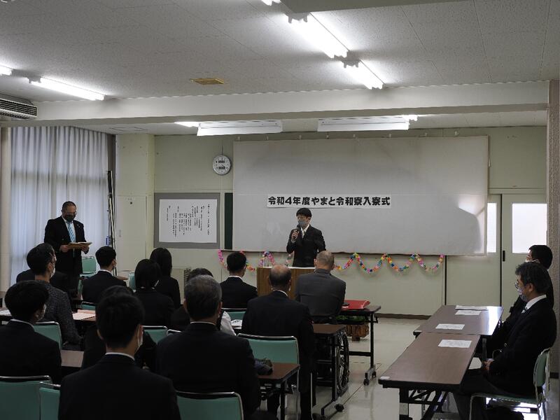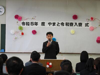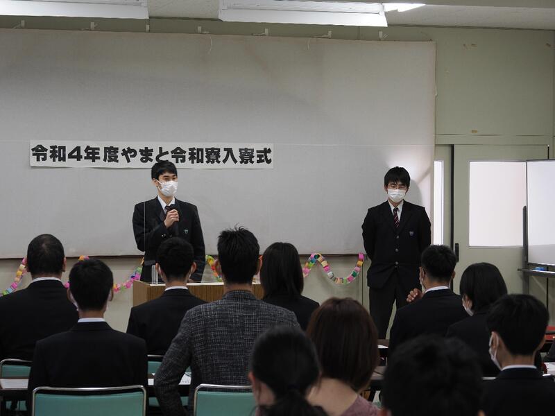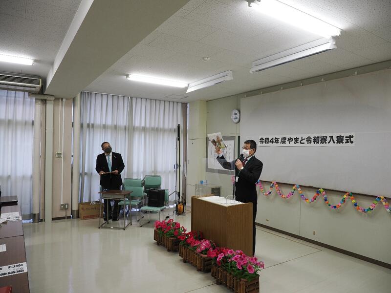 入学式後、会議室にて入寮式が行われました。新たに10名の生徒がやまと令和寮に入寮しました。