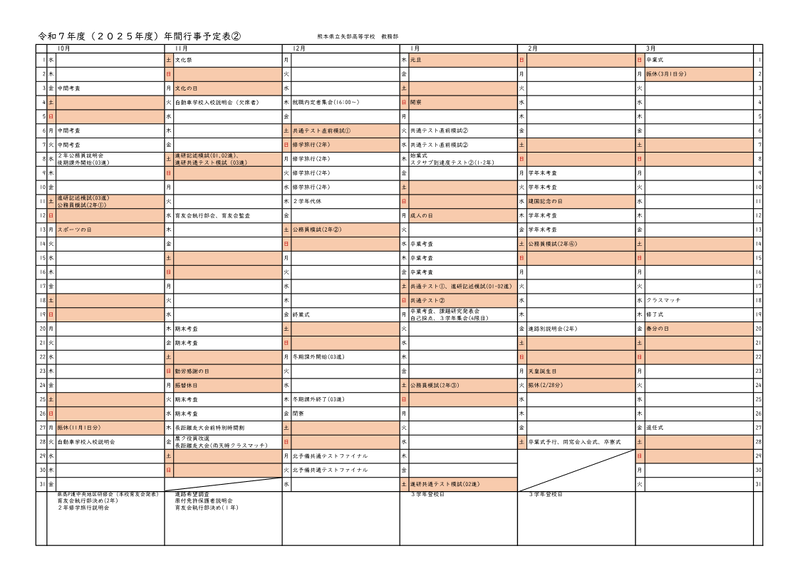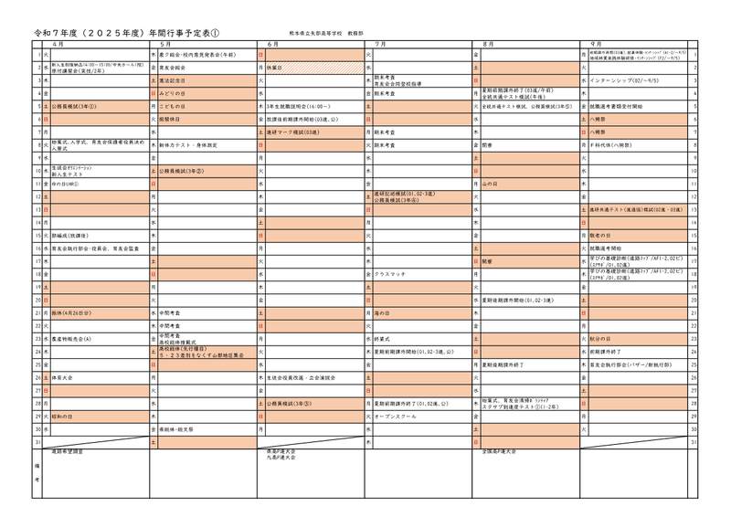 令和7年度年間行事予定 諸事情により学校行事・日程等が変更される場合があることを申し添えます。 保護者の皆様は、学校連絡アプリ「すぐーる」で配信される各月の行事予定もご確認ください。 R7 年間行事予定表(HP).pdf