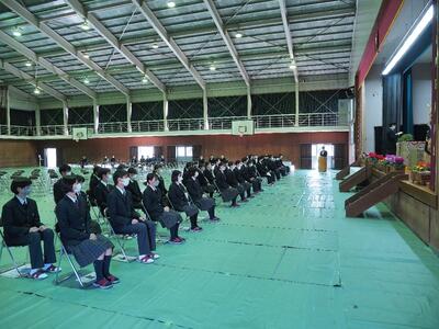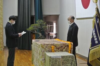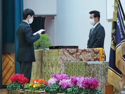 矢部高校では、卒業式の前日(2月28日)に同窓会入会式を実施しています。