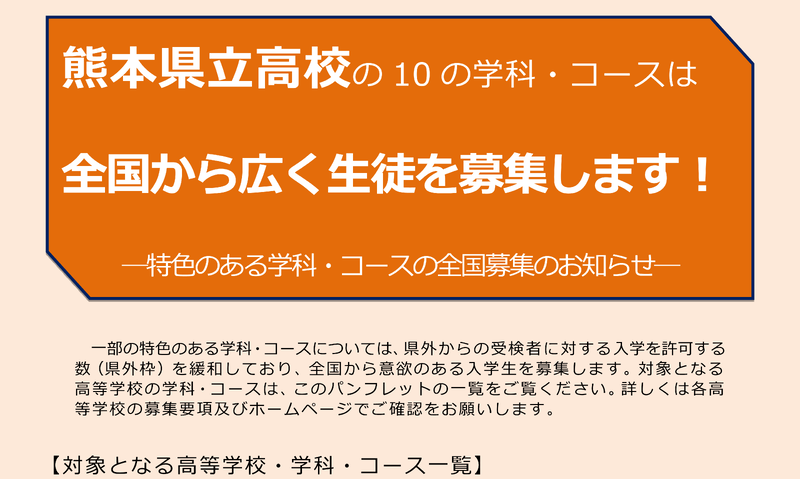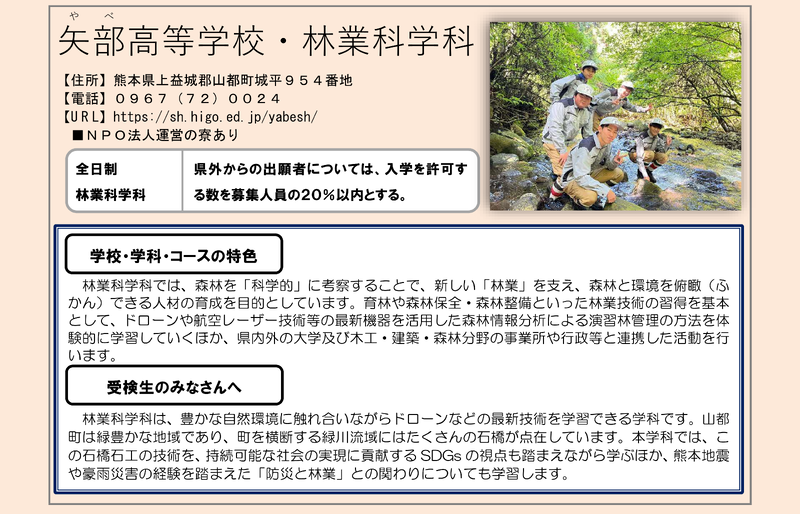 林業科学科の全国募集について(令和8年度入学者選抜 県立学校教育局 高校教育課作成資料より一部抜粋)