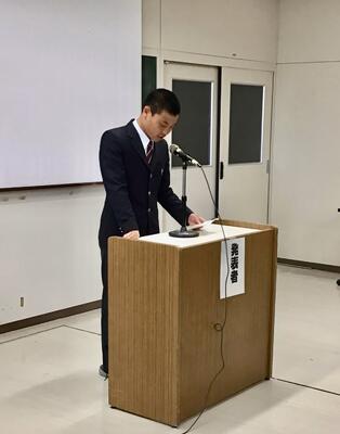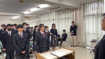 校長先生から激励の言葉をいただき、代表して普通科進学類型の原田くんが宣誓を行いました。