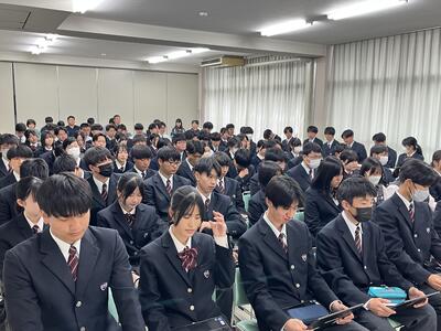 進路指導主事からの激励もあり、最後に進学担当の先生から諸注意がありました。