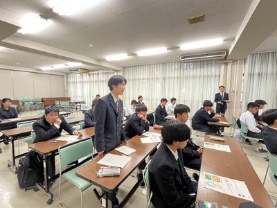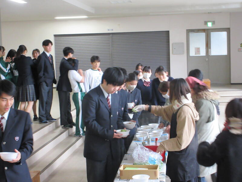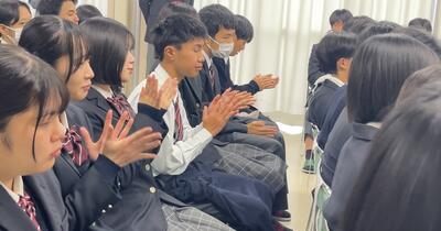 始業式では、校長先生が山極壽一元京都大学総長による「ゴリラから学ぶ人間社会」の話を引用され、類人猿の姿から私たちが学ぶべき共生の大切さを伝えられました。また、冬休み中には食農科学科3年の財津さんの作文が新聞に掲載されるという、大変誇らしいニュースの紹介もありました。