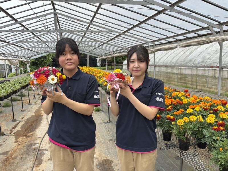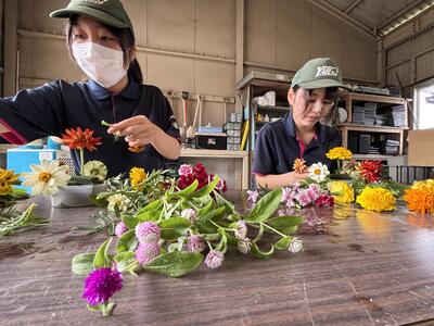 農業科学コース3年生と2年生の「草花」の授業でフラワーアレンジメントを作成しました。