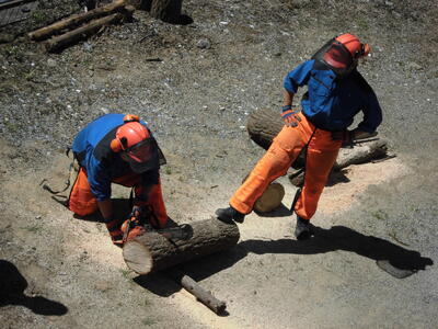 間伐実習では、木を伐る技術だけではなく、森林を守り育てる責任と誇りが育成されます。生徒一人一人が安全に作業を進める姿には成長を感じました