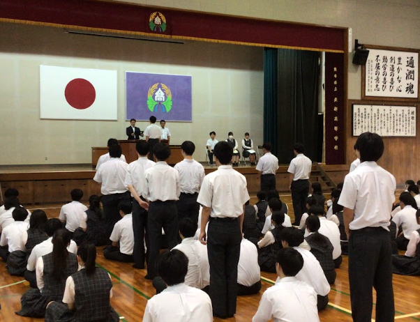 新1年生が入学してから2日目となった本日、2・3年生との対面式が行われました。この対面式、矢部高校では、一風変わった企画が恒例となっています。