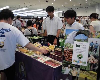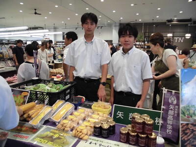 矢部高生が日々の実習で丹精込めてつくった夏野菜苗や草花苗、食品加工品を地域の皆様に購入いただきました