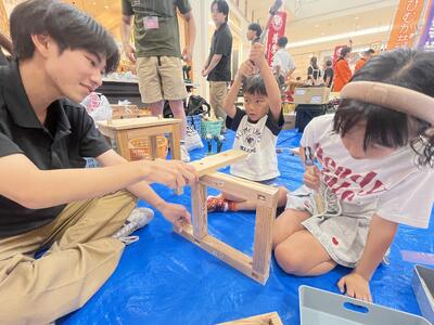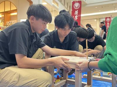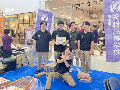 本校から林業科学科の生徒が参加し、通潤パズルや木製クリップボード・小型のイスの販売、そして通潤パズルの体験会を行いました