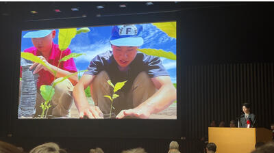 協賛のロクシタンなどの企業や森林組合、地元の方々、ボランティアなど全国各地から山都町に集まったほか、熊本県竹内副知事もお見えになり、ヤマザクラやクヌギなど約1,000本の苗木を植樹しました。