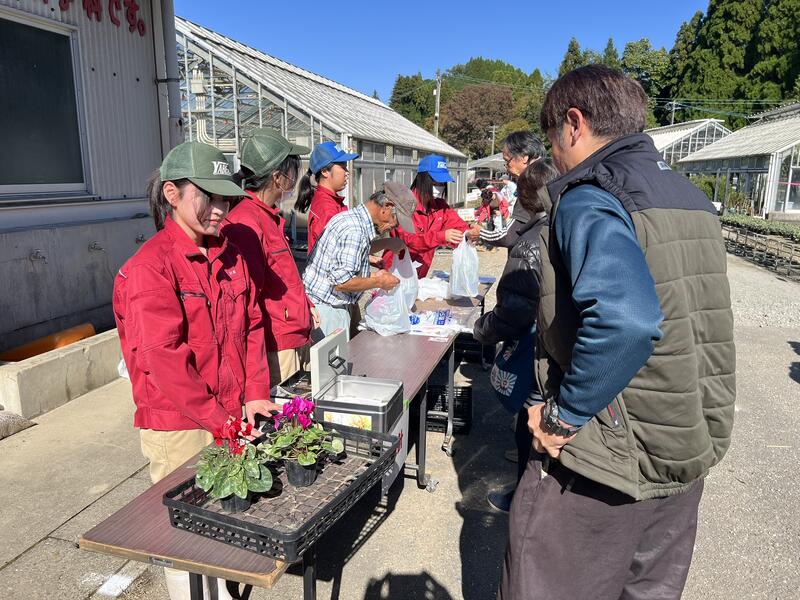 天候にも恵まれ、多くのお客様に来場していただき、タマネギ苗、メロン、ダイコン、葉ボタン、ガーデンシクラメン、ジャムなどの実習製品を販売することができましたご来場いただき、ありがとうございました。