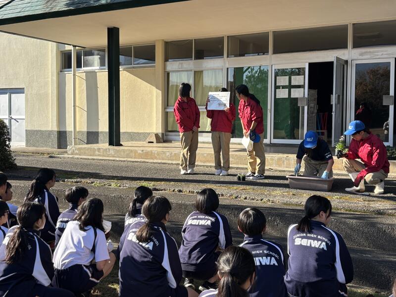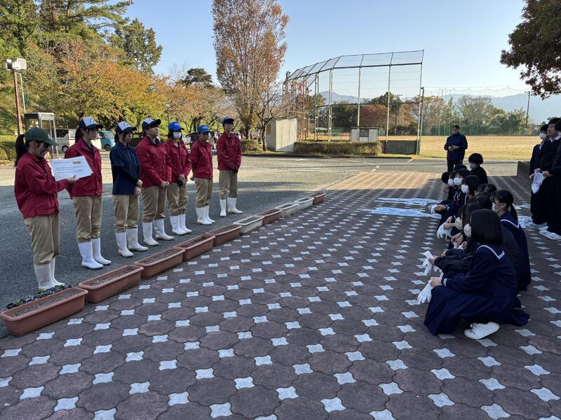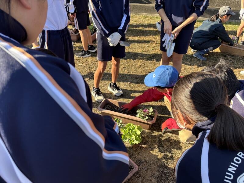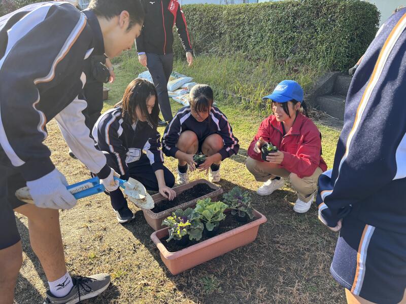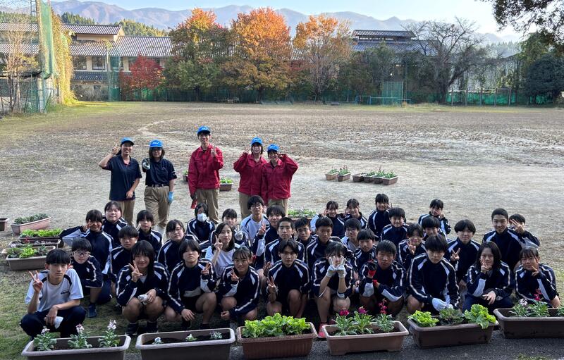 11月6日(木)放課後、矢部中学校にて花植交流活動を行いました