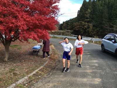 山道特有のアップダウンもあり、実際の距離よりも長く感じられる9kmでしたが生徒たちは笑顔で走っていました